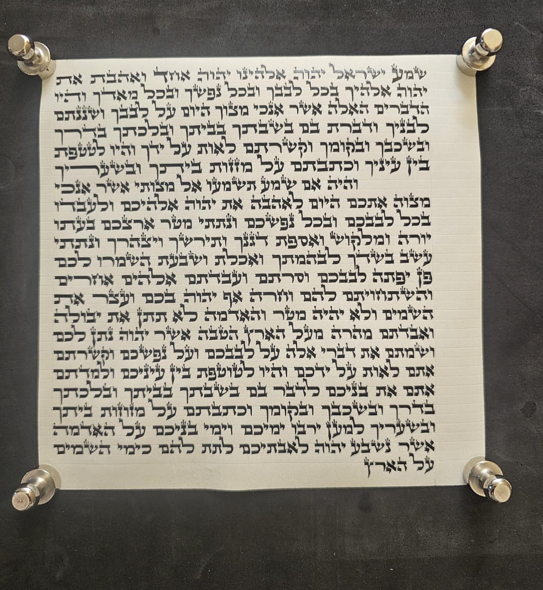כתיבה מהודרת על קלף אמיתי, בעבודת יד של סופר סת"ם מוסמך – פיטום הקטורת, למנצח בנגינות, אשת חיל ועוד. אידיאלי לברכה לבית, מתנה מיוחדת ופריט יודאיקה בעל משמעות.